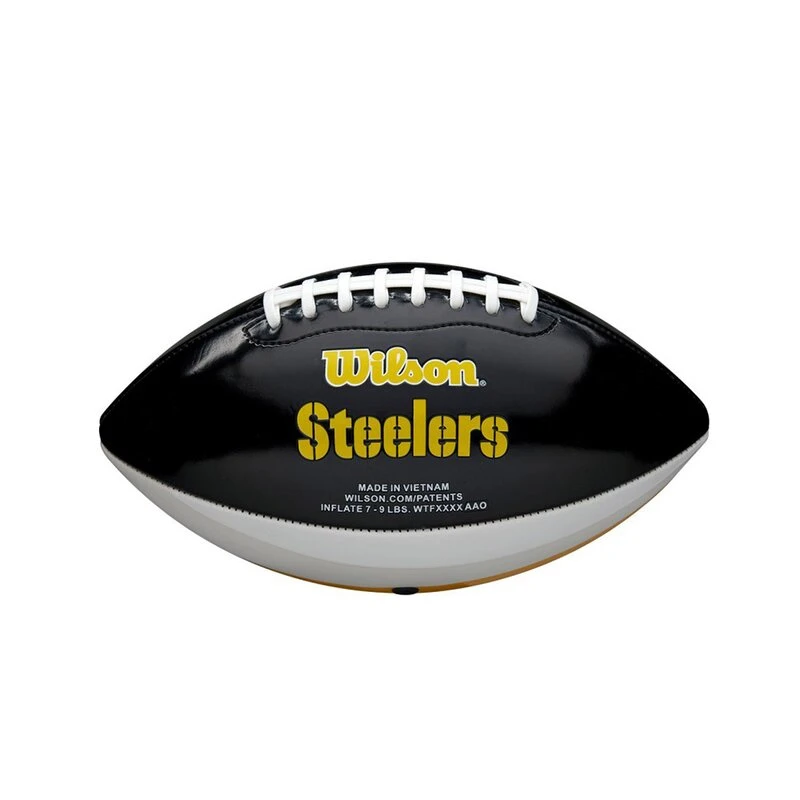 Der Wilson NFL Peewee Pittsburgh Steelers Logo Football ist ein tolles Statement um Deine Loyalität Deinem Lieblingsteam zu zeigen!